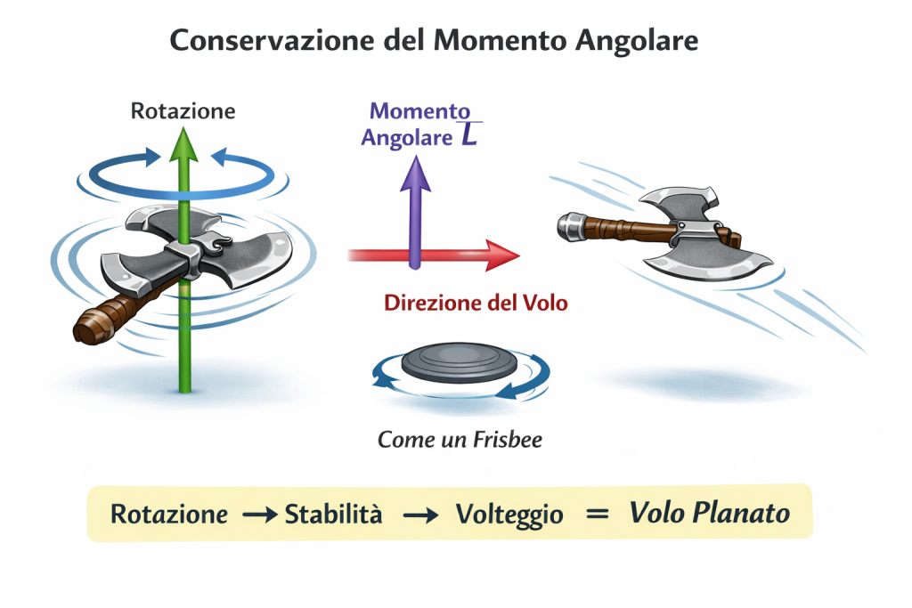 È lo stesso principio per cui un frisbee vola dritto invece di cadere a terra: se riesci a farla ruotare e a spostarne leggermente il peso mentre è in aria, la traiettoria dopo cambia. E cambia anche la direzione: il “richiamo” di Kratos, non sarebbe quindi un incantesimo o un qualcosa di collegabile al magnetismo, ma una sorta di telecomando molto costoso.