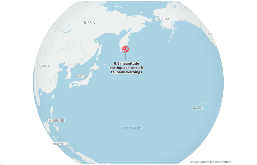 Un potente terremoto di magnitudo 8,8 ha colpito la costa della penisola russa della Kamchatka, nell’estremo oriente, provocando evacuazioni e allarmi tsunami nel Pacifico.